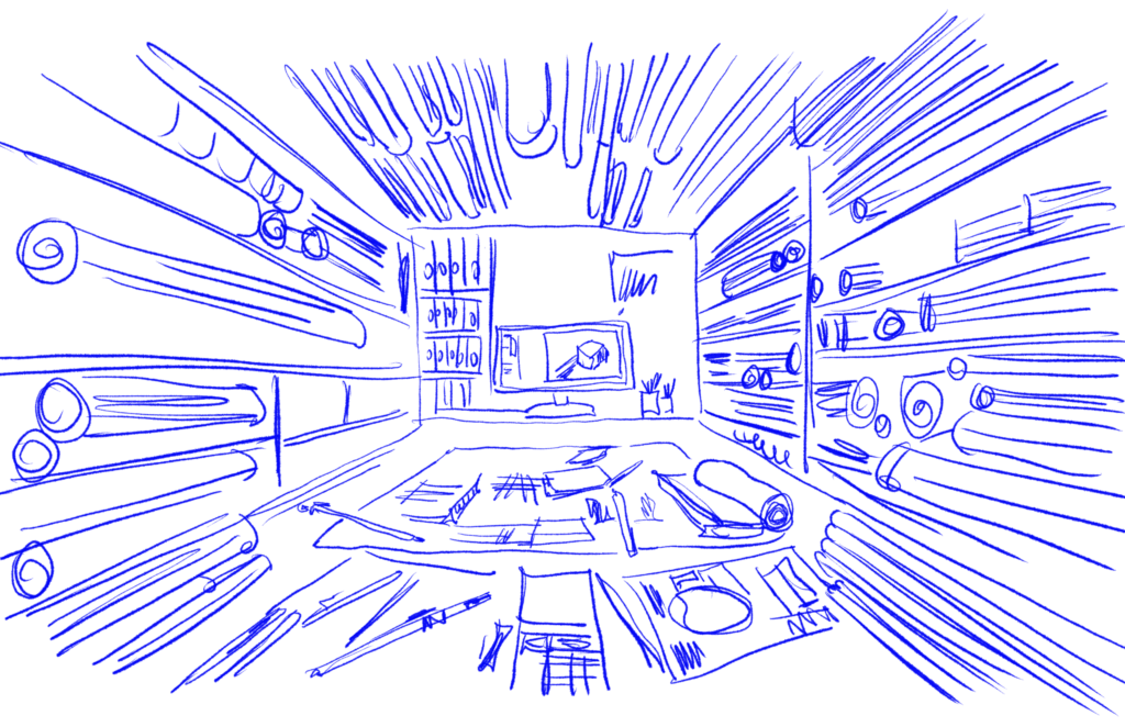 Relevés, esquisses, plans et modélisation du projet.